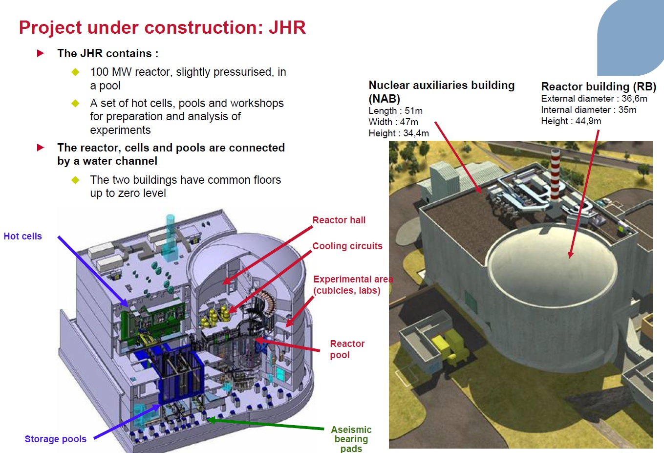 Пища для размышлений Небольшая, но весьма информативная заметка от 2018 года даёт нам много пищи для размышлений. Например, в ней приводится предполагаемое разделение труда между французскими компаниями при разработке ММР-2018. "Techicatome", вопреки сложившемуся впечатлению, должен был взять на себя только "исследование конструкции реактора, разработку новых технологий и определение стальной оболочки". А проектированием ядерного острова, включая системы безопасности и АСУ ТП, должна была заняться компания EDF. Исследования активной зоны, свободной от борного регулирования, предлагались комиссариату. За второй контур и обеспечение модульности могла бы взяться "Naval Group". Общее руководство проекта оставалось бы за EDF. Как легко догадаться, задачу по проектированию ядерного острова внутри EDF отдали бы компании "Framatome", бывшей составной части группы AREVA. Но ведь у AREVA в своё время имелось собственное видение того, как нужно двигаться в малой энергетике. В сентябре 2013 года в китайском Чэнду прошёл рабочий семинар МАГАТЭ по оценке технологий малых модульных реакторов. В докладе, с которым на семинаре выступил представитель AREVA, упоминались лодочные реакторы, NP-300, проекты по районному теплоснабжению, но основной упор был сделан на имеющийся у Франции опыт создания исследовательских реакторов. Он (опыт) у французов действительно немалый - "Osiris", "Siloe", "Azur" и многие другие. А бриллиантом в короне французского исследовательского сектора должен стать реактор JHR, "Jules Horowitz" - реактор, который строится с 2007 года и который войдёт в строй не ранее 2025 года. Но что мог бы заимстовать NUWARD от JHR? Ведь у последнего совершенно иная специализация, это аппарат для науки, а не для бизнеса. Общее представление о JHR можно получить из рисунка ниже. Щёлкните левой клавишей мыши для просмотра ![]() И в завершение статьи - ещё одна маленькая загадка, ответа на которую мы не знаем. В первой половине 2010-ых годов у группы AREVA был проект малого реактора i-150. Всё, что о нём известно - это интегральный PWR мощностью 150 МВт(э), проект находился на стадии basic design. Что это был за аппарат и какова судьба этого проекта - остаётся тайной. Ключевые слова: Малая энергетика, Европа, Франция, Статьи, Владимир Рычин Другие новости: Подписано соглашение о подключении строящейся АЭС "Аккую" к турецкой энергосистеме Построят более 1000 км высоковольтных линий. Потребители в ЮАР могут лишиться электричества на 6 часов в день Уголь для ТЭЦ промок. Подписан договор на выполнение СМР по проекту строительства энергоблока с реактором БРЕСТ-ОД-300 Сумма контракта составила 26,3 млрд рублей. |