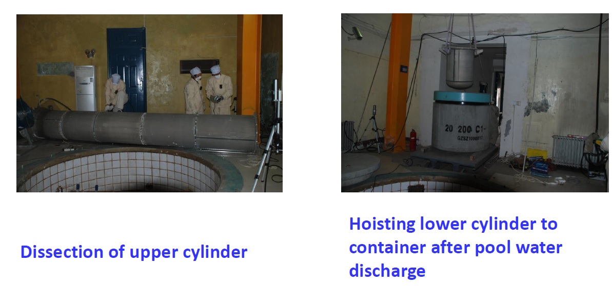 MNSR - опыт вывода AtomInfo.Ru, ОПУБЛИКОВАНО 19.12.2019 Электронное издание несколько раз обращалось к истории китайского проекта исследовательских реакторов MNSR. Мы рассказали про сам реактор MNSR и про его канадский прародитель SLOWPOKE. В этой статье мы затронем такую тему как вывод реакторов MNSR из эксплуатации. В статье использованы материалы доклада, который сделал Чжоу Идун из китайского института атомной энергии на семинаре в Норвегии в 2017 году. MNSR из Цзинаня К сегодняшнему дню в Китае выведены из эксплуатации два реактора MNSR. Это реакторы MNSR-SH (Шанхай, пущен в 1991 году, выведен в 2008 году) и MNSR-SD (Цзинань, пущен в 1989 году, выведен в 2012 году). Реактор MNSR-SD был окончательно остановлен в марте 2008 года. В сентябре 2009 года из него было выгружено топливо и отправлено на хранение в китайский институт атомной энергии (CIAE). На следующем этапе была разработана и направлена для согласований программа вывода реактора. Одобрение со стороны экологического министерства и регуляторов (NNSA) было получено в декабре 2010 года, что дало возможность приступить к работам по демонтажу реактора. Операция по демонтажу была выполнена по-китайски быстро, за три месяца (завершена в марте 2011 года). Несколько больше времени потребовалось для обследования площадки (завершено в декабре 2011 года). В апреле 2012 года министерство экологии и охраны окружающей среды КНР выдало заключение о том, что площадка бывшего реактора MNSR-SD может использоваться для других целей без ограничений. Это решение ознаменовало конец работ по выводу реактора. MNSR-SD - типичный представитель реакторов своего класса. Тип - tank-in-pool. Топливо - уран-алюминиевый сплав. Отражатель - бериллий. Теплоноситель и замедлитель - лёгкая вода. Тепловая мощность - 30 кВт(т). Активная зона помещена в алюминиевый корпус. Его высота - 5,6 м, внутренний диаметр - 0,6 м, внешний диаметр - 0,62 м, вес - примерно 350 кг. Диаметр бассейна - 2,7 м, глубина - 6,5 м. Внутренние стенки и пол бассейна выполнены из керамической плитки и железобетона. Реактор MNSR-SD. ![]() Корпус реактора ![]() Бассейн ![]() Работы по выводу Цель, которую следовало достичь при выводе MNSR-SD - обеспечить полное освобождение площадки для последующего использования в любых целях без ограничений (unrestricted release).