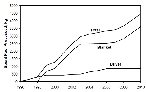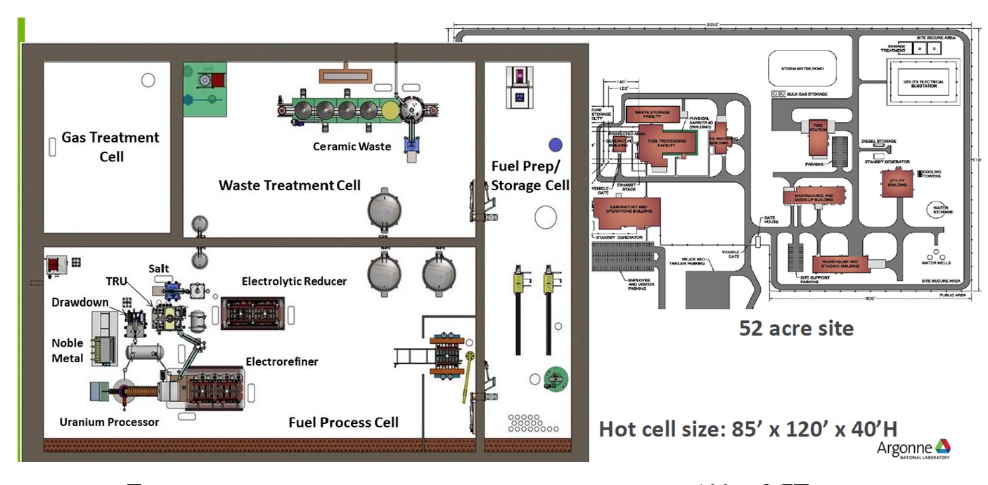 Статья подготовлена на основании доклада Argonne National Laboratory (Argonne NL) на отраслевом семинаре по вопросам обращения с ОЯТ, который прошёл в США в январе 2020 года. Проблема и решение Вопрос обращения с ОЯТ является важнейшим с точки зрения глобальных перспектив развития ядерной энергетики не только в США, но и в мире. С момента зарождения и по сей день ядерная энергетика не имеет единого, окончательно обоснованного решения в области бэк-энда. Прибегая к языку метафор, авторы доклада описывают сложившуюся ситуацию следующим образом: "Строим дом без туалета!" или "Самолёт взлетает без шасси!". С точки зрения специалистов Argonne NL, пиротехнология переработки ОЯТ является наилучшим вариантом для организации завершающей стадии ядерно-топливного цикла действующих АЭС с тепловыми реакторами. Референтный опыт На текущий момент в США имеется опыт применения пиротехнологии, базирующейся на рафинировании в расплаве, для целей переработки ОЯТ быстрого натриевого реактора EBR-II. В период с 1965 по 1969 год было переработано в общей сложности около 35 000 топливных стержней. Иллюстрация организации переработки ОЯТ EBR-II. ![]() Однако у применявшегося в 60-ых годах метода рафинирования в расплаве были выявлены два основных недостатка: отсутствие возможности выделения продуктов деления благородных металлов и проблемы с организацией эффективного извлечения плутония из бланкетов. В качестве варианта решения отмеченных проблем в рамках выполнения программы Integral Fast Reactor (IFR) (1983-1994 годы), которая явилась развитием проекта EBR-II, была разработана технология пиропереработки ОЯТ на базе процесса электрорафинирования. Технологическая схема пиропроцесса на базе электрорафинирования. ![]() Разработанная пиротехнология с применением электрорафинирования была успешно продемонстрирована на опытно-промышленном уровне, суммарно переработано около 4,5 тонн накопленного ОЯТ EBR-II. Динамика переработки ОЯТ EBR-II методом электрорафинирования. ![]() Нюансы технологии К достоинствам пиропроцесса на базе электрорафинирования разработчики относят, прежде всего, компактность основного технологического оборудования в сравнении с классической гидрометаллургией (что положительно сказывается на экономике), обеспечение невыделения чистой плутониевой фракции (решение проблемы нераспространения) и возможность организации эффективного извлечения минорных актинидов. Реализация масштабной переработки ОЯТ реакторов на тепловых нейтронах по пиротехнологии с извлечением и дальнейшим выжиганием минорных актинидов в реакторах с быстрым спектром нейтронов позволит снизить долгосрочную радиотоксичность образующихся отходов в 1000 раз, а срок требуемой выдержки РАО сократится с 300 000 до примерно 300 лет. Авторы доклада особенно подчёркивают, что наиболее эффективным, технологически обоснованным и передовым вариантом выжигания минорных актинидов на сегодняшний день является их утилизация именно в быстрых реакторах. При этом необходимость в репозитории для образующихся на выходе ядерно-топливного цикла РАО по-прежнему останется, однако требования к подобному объекту станут существенно лояльнее. В то же время важно, что пиротехнология продемонстрирована только на металлическом ОЯТ быстрых реакторов. Для переработки оксидного ОЯТ тепловых реакторов необходимо добавление в изнача