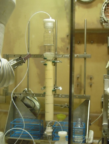 Важное преимущество актиния-225 перед другими медицинскими изотопами со схожими функциями - его относительно долгий период полураспада (почти 10 дней). Для сравнения, у висмута-213 период 45 минут, а у астата-211 - 8 часов. Таким образом, работая с актинием-225, атомщики и медики располагают бо́льшим временем для того, чтобы выделить изотоп, изготовить из него радиофармпрепарат и доставить его к пациенту. На данный момент, в США нет ни одного радиофармпрепарата на базе актиния-225, получившего одобрение от FDA, управления по саннадзору за качеством пищевых продуктов и медикаментов. Ведутся доклинические испытания по лечению рака груди и глиобастомы, а также клинические испытания по лечению миелоидного лейкоза и рака простаты. Но когда (и если) FDA утвердит первый препарат с актинием, то медики США столкнутся с проблемой нехватки данного радиоизотопа. Сегодня в США актиний-225 производят три нацлаборатории - Окридж, Брукхейвен и Лос-Аламос, но объёмы производства малы. Ториевая корова В 2014 году вице-президент "TerraPower" по инновациям Джефф Латковски и радиохимик компании Кен Червински предложили вернуться к идее родом из начала нулевых, а именно, о получении актиния-225 из ядерных отходов. В прошлом идея до реализации не дошла из-за отсутствия необходимой инфраструктуры. В ноябре 2019 года "TerraPower", "Isotek Systems" и министерство энергетики США подписали соглашение о партнёрстве с целью создать инфраструктуру для получения актиния-225. Схема сотрудничества выглядит следующим образом. Компания "Isotek" (входит сейчас в состав "SNC-Lavalin") на протяжении последнего десятилетия нанимается министерством энергетики для работ по удалению запасов урана-233, оставшегося от закрытых военных программ. За организацию хранения удаляемого урана-233 отвечает "Isotek". Так как программа идёт давно, то в хранимых запасах накопилось определённое количество тория-229, который образуется в результате распада урана-233. В свою очередь, торий-229 распадается с образованием актиния-225. Хранится уран-233 в виде нитрата уранила, который образуется в результате растворения исходного урана в азотной кислоте. Компания "Isotek" прогоняет раствор нитрата уранила через ионообменный фильтр, что позволяет отделить торий. Далее торий извлекается из ионообменной колонны, сушится и поставляется в "TerraPower". Задача "TerraPower" - выделить из получаемого тория-229 радиоизотоп актиний-225. Делать это компания собирается методом под названием "доение ториевой коровы" (milking the thorium cow). Метод был разработан в начале 90-ых годов в Окридже и до сих пор применяется в американских нацлабораториях. В данном методе ториевый раствор проходит через колонну в которой организован отбор тория, в то время как "молоко" - актиний-225 и другие присутствующие в растворе изотопы - сливается дальше. Для отбора 225Ac из "молока" предусмотрен дополнительный ионобменный этап процедуры. Возможности Окриджа по получению актиния-225, как уже сказано, ограничены. Поэтому компания "TerraPower" планирует масштабировать технологию "доения" с целью вывести её на высокий уровень производительности. Колонна в ORNL для получения актиния-225 ![]() Процесс образования актиния-225 из урана-233 путём радиоактивных распадов стабильный, надёжный, но чрезвычайно медленный. Период полураспада урана-233 составляет 160 тысяч лет, а тория-229 - около 8 тысяч лет. За год из килограмма урана-233 получа