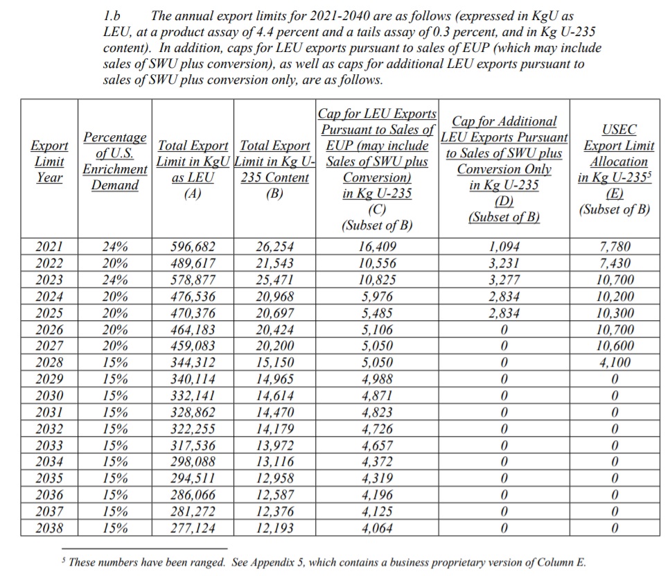 Проект дополнения к СПАР опубликован AtomInfo.Ru, ОПУБЛИКОВАНО 15.09.2020 Министерство торговли США опубликовало проект соглашения о продлении срока действия соглашения СПАР, регулирующего условия поставок российского обогащённого урана на американский рынок. Соглашение СПАР (соглашение о приостановке антидемпингового расследования, RSA) было заключено в октябре 1992 года, причём с российской стороны тогда выступал ещё Минатом. В дальнейшем соглашение пять раз дополнялось, последняя по времени (действующая) редакция соглашения была подписана в феврале 2008 года. Срок действия соглашения подходит к концу в 2020 году. В целях возможного дальнейшего продления срока действия СПАР министерство торговли США дало официальный старт процессу консультаций 22 февраля 2019 года. Сейчас этот процесс подходит к концу. 11 сентября 2020 года министерство и "Росатом" парафировали изменённую редакцию соглашения СПАР, которой предстоит быть в силе до 2040 года. В соответствии с новой редакцией, экспорт в США российского обогащённого урана будет продолжен. Соглашение определяет ряд условий для продолжения экспорта, самое главное из которых - размеры квоты российского ОУП на американском рынке. Сейчас российская квота составляет примерно 20%. В 2021 и 2023 годах она составит 24%, в 2022 и 2024-2027 годах - 20%, в 2028-2040 годах - 15%. Следует отметить, что первоначально в ходе консультаций американская сторона предлагала бо́льшие сокращения квоты, так что российские переговорщики определённо смогли добиться успехов. В таблице ниже приводятся по годам российские квоты как в процентах, так и в абсолютном выражении. Абсолютные значения были рассчитаны исходя из Lower scenario потребностей США в работе разделения, включённого в прогноз WNA от 2019 года. Новая редакция СПАР предусматривает проведение в будущем коррекций для приведения этих значений к реальным объёмам потребностей. Щёлкните левой клавишей мыши для просмотра ![]() Ключевые слова: ЯТЦ, Обогащение, США, Россия, Статьи Другие новости: Работы по созданию реактора TWR на бегущей волне поставлены на паузу "TerraPower" сделала выбор в пользу "Natrium". Крайний срок подачи тезисов на конференцию FR21 сдвинут на 30 сентября Конференция пройдёт в Китае 10-13 мая 2021 года. Частная компания в ЮАР разрабатывает проект HTML100 на базе PBMR При той же мощности стоимость строительства дешевле. |