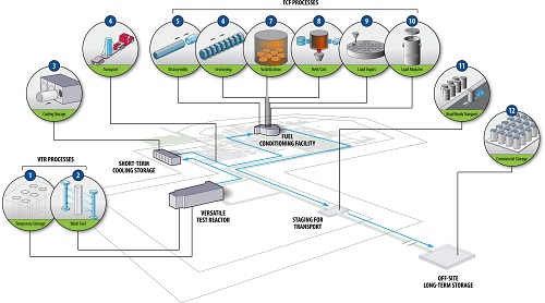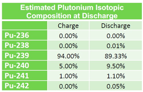 Плутоний в топливе для VTR по изотопному составу будет оружейного качества AtomInfo.Ru, ОПУБЛИКОВАНО 24.01.2021 Плутоний, предполагаемый для использования в топливе планируемого к строительству в США быстрого натриевого исследовательского реактора VTR, будет по изотопному составу близок к оружейному. Такие данные приводятся в докладе руководителя группы проектирования и анализа топлива VTR Дугласа Кроуфорда, сделанного в декабре 2020 года на семинаре, организованном национальной академии наук США. Средняя глубина выгорания топлива в реакторе VTR составит порядка 53 ГВт×сут/т. Изотопный состав плутония в отработавшем топливе ухудшится по сравнению с исходным, однако всё ещё останется достаточно чистым (доля 239Pu более 89%). Говоря о судьбе ОЯТ реактора VTR, докладчик подчеркнул: "Цель обращения с ОЯТ реактора VTR проста - подготовить его к захоронению". Изотопный состав плутония в свежем (слева) и отработавшем топливе VTR ![]() Схема процесса обращения с ОЯТ VTR. ![]() Ключевые слова: ЯТЦ, Плутоний, Быстрые натриевые реакторы, VTR, США Другие новости: В мире статус действующего имеют 443 блока, статус строящегося 52 блока - PRIS В Китае один "Дракон" пущен, восемь строятся. Первый энергоблок БелАЭС выведен на 100% мощности Тепловая мощность - 3200 МВт(т); электрическая - 1170 МВт(э). Первый пущенный блок с PHWR-700. |