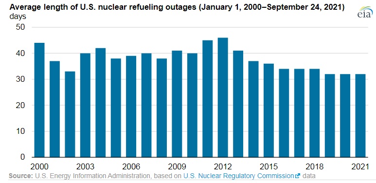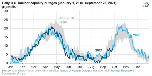 Летом 2021 года в США простаивало меньше блоков, чем летом 2020 года AtomInfo.Ru, ОПУБЛИКОВАНО 04.10.2021 Летом 2021 года в США в среднем в день простаивало на ППР 3,1 ГВт(э) атомных мощностей, что на 22% меньше аналогичного показателя за лето 2020 года (4,0 ГВт(э)). Об этом говорится в сообщении управления по энергетической информации (EIA) министерства энергетики США. Меньше всего атомных мощностей находилось на ППР в августе - в среднем 1,7 ГВт(э) в день. Остановленные на ППР атомные мощности в США. ![]() Средняя продолжительность ППР на американских блоках в 2021 году составила 32 дня (по состоянию на 24 сентября). В последнее десятилетие в США наблюдается тенденция к сокращению длительности останова блоков на ППР. Средняя продолжительность ППР на АЭС США. ![]() Число неплановых остановов на блоках США в 2021 году составило 34 (по состоянию на 24 сентября). Из них 14 остановов произошли летом. Следует отметить, что EIA включает в число неплановых остановов досрочные окончательные остановы. Число неплановых остановов на АЭС США. ![]() Другие новости: Британия готовится вытеснить CGN Британское государство должно заменить гуандунцев на АЭС "Sizewell C". В мире статус действующего имеют 444 блока, статус строящегося 51 блок - PRIS Учтено начало строительства "Xudabu-3". Болгарский сайт AtomInfo.Bg отмечает своё десятилетие Наши поздравления коллегам! |