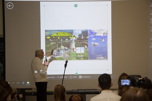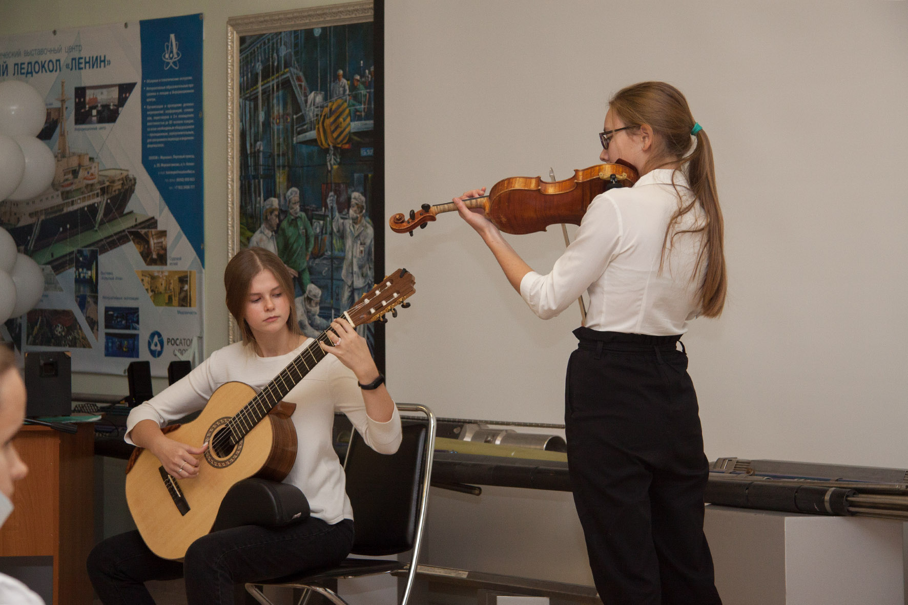 В ГНЦ РФ - ФЭИ прошёл литературно-поэтический вечер памяти в честь первопроходцев атомной энергетики Пресс-служба АО ГНЦ РФ - ФЭИ, ОПУБЛИКОВАНО 27.10.2021 Ежегодный "Литературно-поэтический вечер", посвящённый памяти первопроходцев атомной энергетики, состоялся 22 октября в рамках празднования 75-летия ГНЦ РФ - ФЭИ и 65-летия города Обнинска. Ветераны отрасли, студенты, школьники, преподаватели и учащиеся Детской школы искусств №1, члены семейного клуба "Детский сад Курчатова" выступили с творческими номерами в зале пульта управления Первой в мире АЭС. "Уже много лет в этот день мы отдаём дань памяти тем, кто защитил Отечество, кто обеспечил мирное небо над головой - зодчим атомного проекта. Людям, благодаря самоотверженному трудовому подвигу которых Обнинск вошёл в историю как город мирного атома", - отметила руководитель музейной группы ГНЦ РФ - ФЭИ Инна Мохирева. Ведущий мировой исполнитель на терменвоксе Петр Термен, правнук знаменитого учёного Льва Термена, прислал видеоприветствие участникам литературно-поэтического вечера, исполнив в честь ветеранов-атомщиков музыкальную композицию Сен-Санса "Лебедь". Традицией мероприятий, проводимых на базе Музейного комплекса ГНЦ РФ-ФЭИ, стало коллективное рисование. Все желающие смогли внести свой вклад в создание уникального полотна-диптиха "Журавлиная память". Творческий процесс происходил в сопровождении видеоряда о великих учёных России и героях Советского атомного проекта, а также знаменитой песни "Журавли" Расула Гамзатова. Завершилось мероприятие торжественным запуском белых шаров в небо в память о героях -атомщиках.