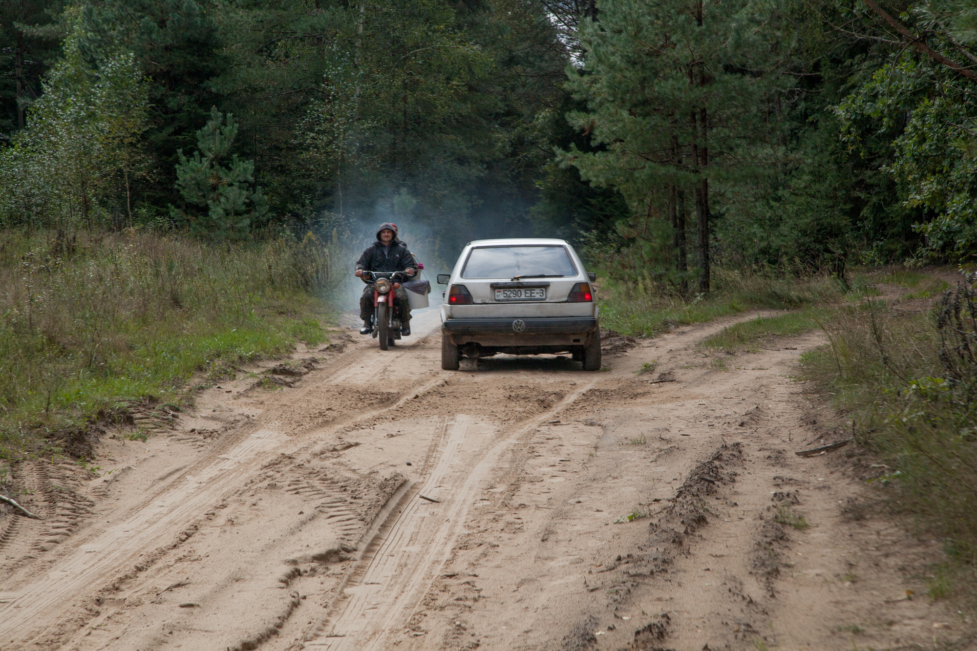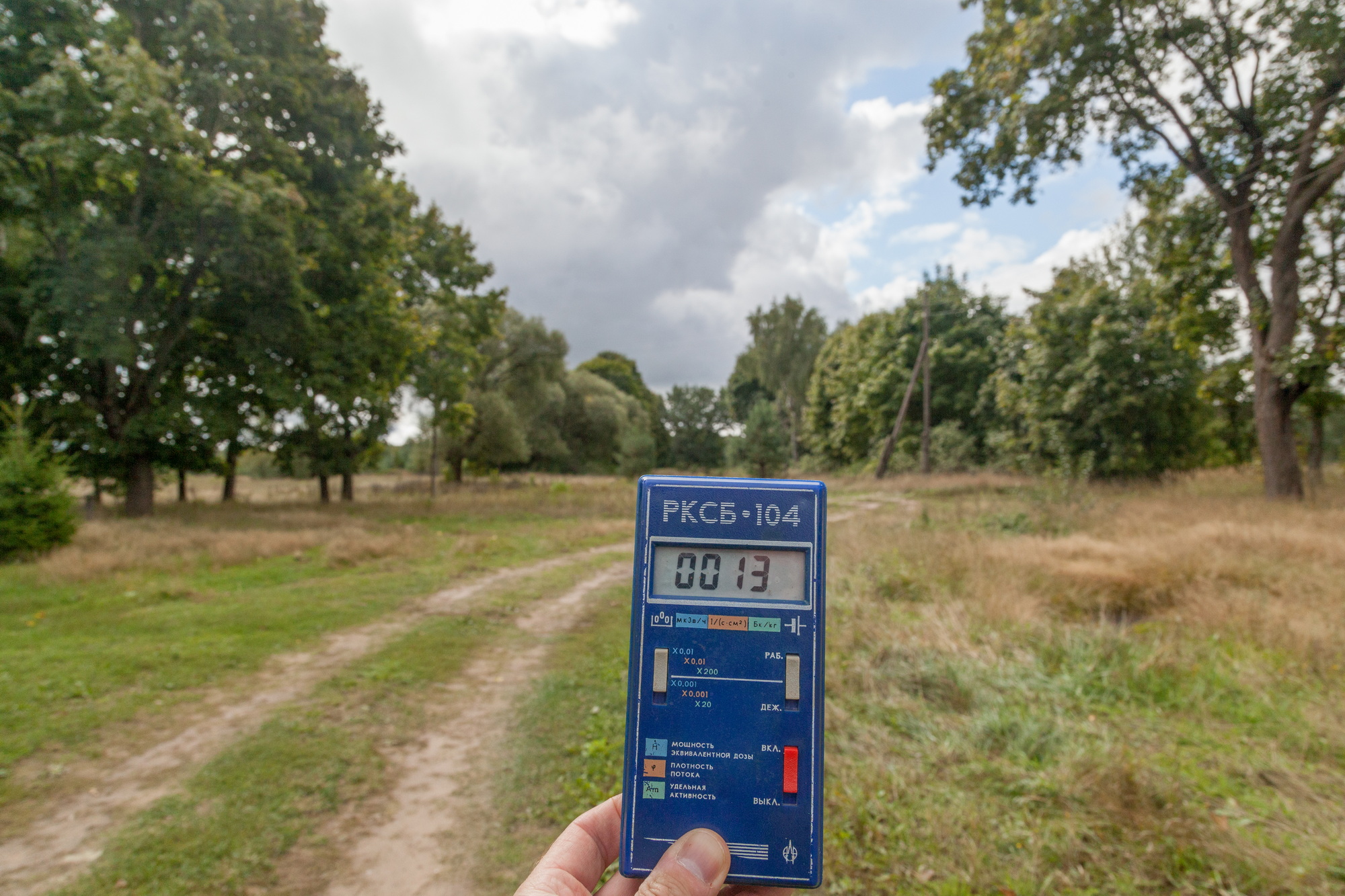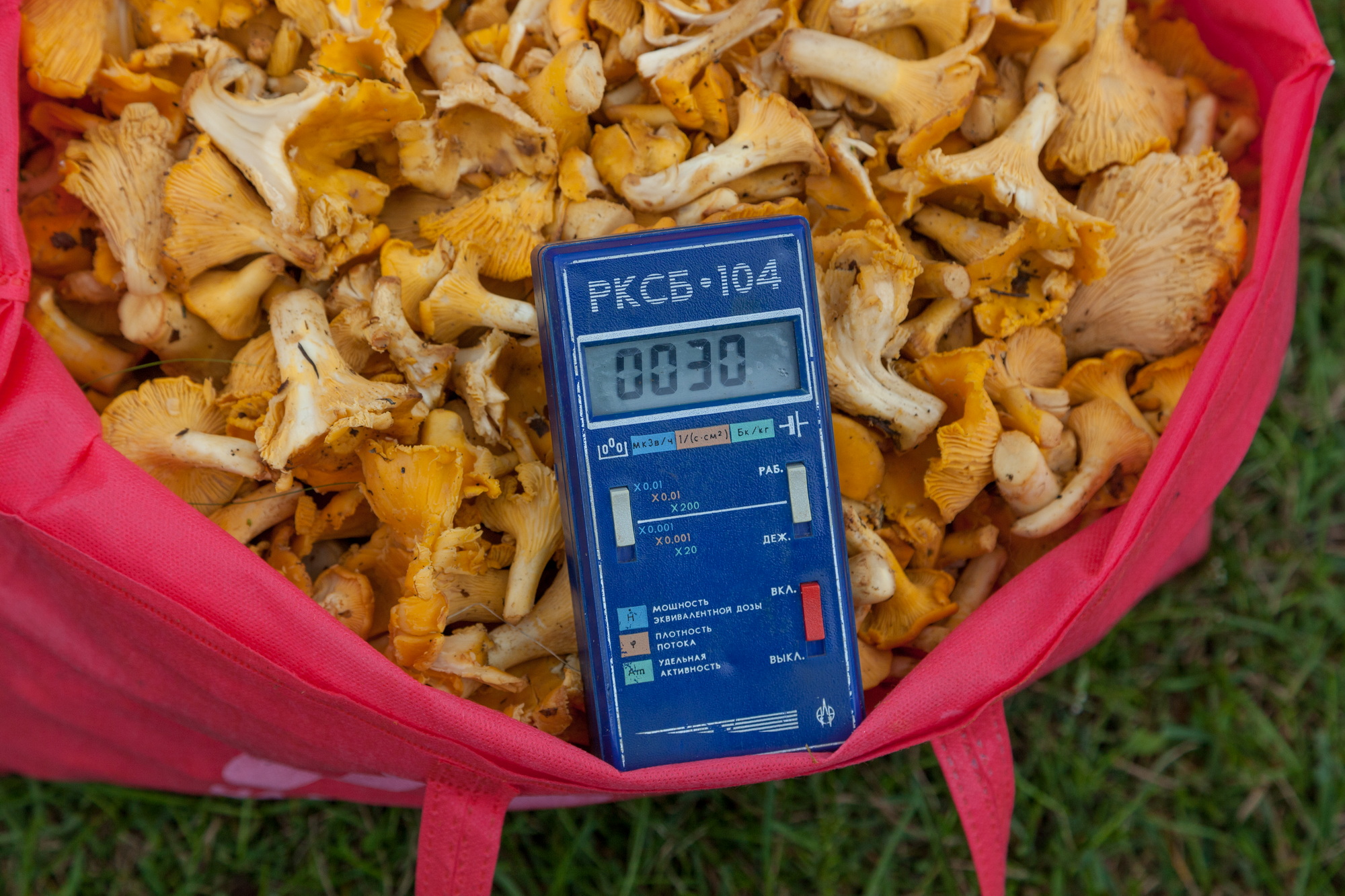 Олег рассказывает, что за день иногда ему удаётся собрать 25 килограммов лисичек. Это 75-100 рублей. Для понимания Олег сообщает, что зарплата в местных колхозах 200-300 рублей в месяц. Сбор лисичек в этих местах стал популярен ещё когда заканчивал своё существование СССР и приоткрыли границу в Польшу, куда и стали возить лисички. До этого здесь лисички считались малоценным грибом. Олег вспоминает, как в те далёкие времена при зарплате в колхозе в 200 рублей у него за месяц сбора лисичек получалось заработать 2000 рублей. Сейчас, как и раньше, лисички идут на экспорт в ЕС, но доходы сборщиков уже не те, что были 30 лет назад. Лисичка ![]() Олег в грибах профессионал - рассказывает, знает, где какие грибы растут и какой гриб лучше всего растёт при определённой температуре. - Ножку не надо срезать. Ножка - самое ценное. На моё замечание, что ножка у многих грибов невкусная, Олег поясняет, что в ножке - весь вес гриба, она самая тяжёлая, и это очень важно, если грибы продаёшь скупщику. На вопрос, как раньше собирали грибы, если 30 лет назад уровень радиационного загрязнения был намного выше, Олег отвечает, что содержание радионуклидов уменьшали многократной промывкой в воде. Утром провёл дозиметрические измерения. Вначале измерил фон под скатами крыши. Обычно это самые загрязнённые места, куда дождями смывалась радиоактивная пыль с площади крыши. По гамма- и бета-излучению дозиметр показывал 28 мкР/ч - небольшое превышение обычных для Беларуси 20 мкР/ч. ![]() Измеряю лисички. Высокой точности получить не получится, но если будет серьёзное накопление радиации в грибах - это будет заметно. Лисички - 30 мкР/ч. Поясняю Олегу, что это небольшое превышение, но, в целом, мало отличающееся от окружающего фона и опасности не представляет. ![]() В ответ Олег крепко выражается, поясняя, что местные скупщики с целью сбить цену на грибы проводят свои измерения. Понимаю, что речь идёт о антикварном дозиметре ДП-5, который производился с 1964 до 1987 (ДП-5В). - Суют в грибы свой этот, ну, похожий на (грубое ругательство) на палке, а потом смотрят на стрелку и говорят, что грибы радиоактивные, а потому нормально заплатить не могут. То есть, хоть и радиоактивные, но и их скупают. Объясняю, что лучше всего грибы измерять в районной СЭС, где есть профессиональные дозиметры и в зависимости от результата потом разговаривать с скупщиком о цене. Кроме Олега, в Красной Поляне захотели побывать его сын Андрей и родственник. Едем вначале в Грязивец. В это время начался сильный ливень, уменьшающий шансы добраться по размытой дороге до Красной Поляны. В Грязивце навещаем местного жителя - знакомого Олега. Он живёт тем, что скупает у населения лисички. Его дом выглядит лучше остальных, а во дворе два недорогих автомобиля и трактор "Беларус". Трактор как ещё один источник дохода - кому-то надо вспахать надел или привезти из леса дров. Олег рассказывает скупщику о моих измерениях, добавляя, "а то некоторые своим (грубое ругательство) на палке тычут, чтобы не нормально не платить". Скупщик вздыхает, и рассказывает мне: - Испортили грибы местных, перессорили всех. Сборщики из-за мест сбора ругаются. Скупщики - из-за цены между собой переругались. Обсуждаем тему непостроенной здесь АЭС. - Будь тут АЭС, отселили бы нас, и, может быть, получил бы квартиру в Могилёве, - замечает скупщик грибов. Когда выбирали площадку под АЭС, ж