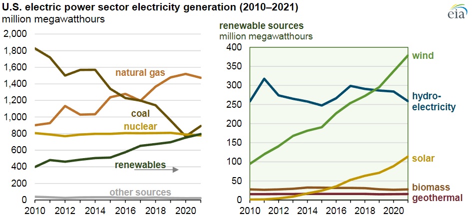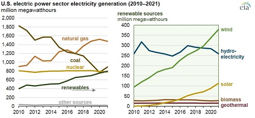 ВИЭ с учётом гидростанций превзошли в 2021 году в США по объёму генерации атомные станции AtomInfo.Ru, ОПУБЛИКОВАНО 26.04.2022 Объём генерации электроэнергии от возобновляемых энергоисточников в США в 2021 году впервые превзошёл объём генерации от АЭС. Такие данные приводит управление по энергетической информации (EIA) министерства энергетики США. Американские станции на ВИЭ произвели в 2021 году суммарно 795 миллиардов кВт×ч, в то время как АЭС произвели только 778 миллиардов кВт×ч. В разряд ВИЭ в отчёте управления включены ветряные, гидро-, солнечные и геотермальные электростанции, а также станции, работающие на биомассе. Щёлкните левой клавишей мыши для просмотра ![]() Ключевые слова: США Другие новости: ANAIS, ATRIUM и ARAMIS. Специалисты ФЭИ приняли участие в работе конференции FR22 FR22 - Олимпиада для быстрых. Госсовет КНР одобрил строительство шести новых атомных энергоблоков на трёх площадках "Sanmen-3/4", "Haiyang-3/4" и "Lufeng-5/6". |