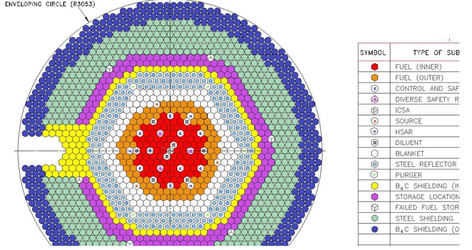 Индия - от PFBR к FBR AtomInfo.Ru, ОПУБЛИКОВАНО 12.05.2022 Международная конференция FR22 по быстрым реакторам и связанным с ними топливным циклам прошла в штаб-квартире МАГАТЭ в Вене с 19 по 22 апреля 2022 года. Группа авторов из индийского центра атомных исследований (IGCAR) имени Индиры Ганди представила на конференции доклад с описанием некоторых изменений в проекте будущих быстрых натриевых бридеров по сравнению с проектом демонстрационного реактора PFBR. От имени группы авторов с докладом выступил С.Рагхупати (S.Raghupathy). Третья система останова Докладчик напомнил, что в Индии уже выбрана площадка для строительства первых двух коммерческих быстрых натриевых бридеров (условное название - FBR1&2), они будут построены в Калпаккаме, то есть там же, где и PFBR. Докладчик добавил, что за первой парой могут последовать ещё четыре коммерческих FBR, но место их строительства сейчас не выбрано. При проектировании FBR1&2 была поставлена задача внести минимальное количество изменений по сравнению с проектом PFBR и сохранить проекты основного оборудования в максимально возможной степени. Наиболее серьёзным на данный момент отличием PFBR и FBR1&2 можно считать введение в проект коммерческих бридеров третьей независимой системы управления реактивностью, а именно пассивной системы HSAR (Hydraulically Suspended Absorber Rods). Оптимизированная картограмма активной зоны FBR с добавленными HSAR. ![]() У демонстрационного реактора PFBR есть две независимые системы управления и защиты - стержни регулирования (9 control & safety rods) и стержни аварийной защиты (3 diverse safety rods). В коммерческом FBR принято решение дополнить их тремя стержнями HSAR пассивного действия. Их поглощающая часть состоит из карбида бора, обогащённого до 76% по бору-10. Стержни HSAR предназначены для аварий с потерей расхода теплоносителя. В условиях нормальной эксплуатации они находятся в верху активной зоны, удерживаемые гидравлической силой, развиваемой потоком натрия. При снижении расхода стержни вводятся в активную зону под действием силы тяжести. Вес стержней HSAR рассчитан так, чтобы они перевели реактор в безопасное подкритическое состояние. Также стержни HSAR вводятся в активную зону и при "обычном" останове реактора системой аварийной защиты. Докладчик привёл некоторые количественные показатели. При аварии с потерей ГЦН объёмное кипение натрия в активной зоне PFBR/FBR начинается через 24 секунды. Ввод стержней HSAR начинается после снижения расхода до 50%, то есть через 8 секунд после начала аварии. Расчётное время полного ввода HSAR составляет примерно 2 секунды, то есть HSAR успевает заглушить реактор задолго до вскипания теплоносителя. Введение дополнительной системы управления реактивностью потребовало выполнить оптимизацию активной зоны. В новой конфигурации коэффициент воспроизводства составляет 1,14 на момент старта кампании и 1,07 для равновесной зоны. Натриевый пустотный эффект реактивности на момент старта кампании составляет 2,3 доллара. Положение стержней HSAR при вводе в активную зону (слева) ![]() Вторая САОЗ Далее докладчик перешёл к сообщению о разработке дополнительной системы отвода остаточного тепловыделения. Он оговорил, что эти разработки выполнялись для более мощного FBR на 1500 МВт(т) и 600 МВт(э). В связи с тем, что сейчас коммерческий FBR планируется в варианте 1200 МВт(т) и 500 МВт(э), их придётся адаптировать к новым техническим характерист