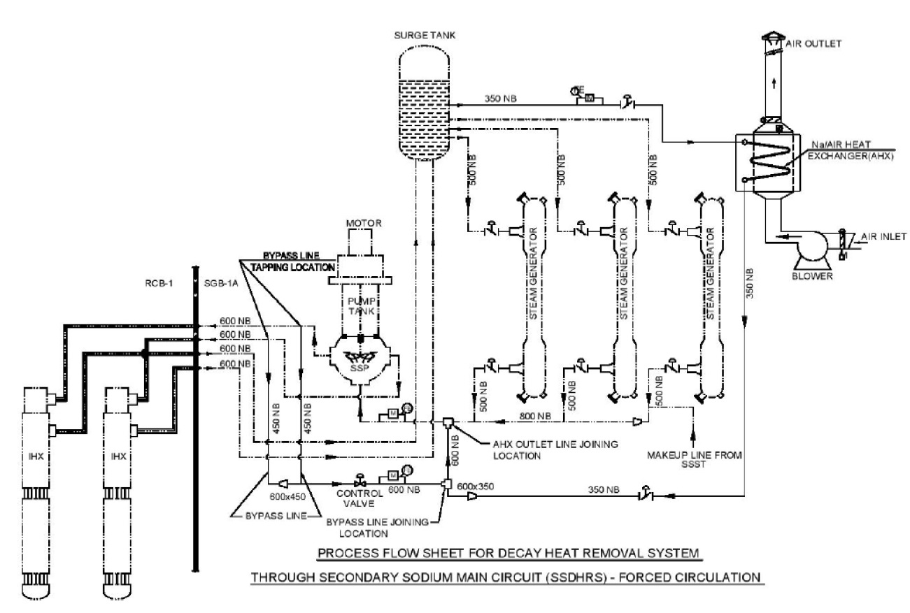 Каждая из систем SSDHRS имеет в своём составе воздушный теплообменник на 15 МВт. При нормальной работе SSDHRS (то есть, с принудительной циркуляцией в контурах) ГЦНы поддерживают расход на уровне 20% от номинала, насосы второго контура - на 26% от номинала, парогенераторы изолированы. В такой конфигурации каждая из SSDHRS обеспечивает отвод до 15 МВт. Были рассчитаны также возможности отвода тепла через SSDHRS при работе в режиме с естественной циркуляцией. В этом случае каждая SSDHRS способна отводить до 8,6 МВт. Система SSDHRS. ![]() Ниже в таблице приводится сравнение параметров системы SSDHRS с параметрами системы отвода остаточного тепловыделения SGDHRS, имеющейся в проекте PFBR и сохранившейся в проекте SGDHRS. Сравнение параметров системы SSDHRS с параметрами SGDHRS. ![]() В заключение докладчик отметил, что конструкция стержней HSAR успешно прошла гидравлические испытания. Эффективность работы дополнительной системы отвода остаточного тепловыделения также была доказана, но для реактора большей мощности, и теперь предполагается повторить необходимый объём обоснований для FBR мощностью 500 МВт(э). Ключевые слова: Быстрые натриевые реакторы, Азия, Индия, Статьи, FR21 Другие новости: Пусковой блок "Hongyanhe-6" (Китай) подключён к сети На блоке установлен реактор ACPR-1000. На блоке №3 АЭС "Куданкулам" установлен корпус реактора Монтаж провели методом Open Top. Росатом вводит дополнительные меры социальной поддержки своих работников Будет произведена индексация окладов всем сотрудникам, за исключением руководителей, на 10% с 1 апреля. |