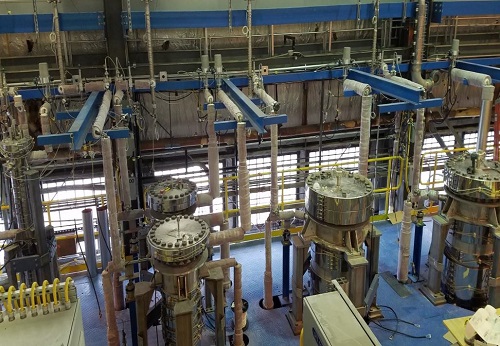 Соответственно, приоритеты НИОКР для быстрых реакторов - разработка и демонстрация инновационных технологий, позволяющих снизить стоимость быстрых реакторов, а также формулирование и обоснование критериев и подходов для лицензирования быстрых реакторов в США. Стенд METL Из экспериментальных установок Роберт Хилл выделил стенд под названием "Mechanisms Engineering Test Loop" (METL), построенный в Аргоннской национальной лаборатории. METL - это многоцелевая натриевая испытательная установка среднего масштаба для тестирования жидкометаллических систем и компонентов в условиях, приближенных к условиям в быстрых натриевых реакторах. Установка имеет начальную конфигурацию из четырёх испытательных ёмкостей, которые параллельно подключены к основному потоку натрия. Это позволяет одновременно испытывать несколько изделий или образцов. Первая заливка стенда натрием состоялась в мае 2018 года, первые эксперименты стартовали в сентябре 2018 года. Стенд работает успешно, единственный крупный перерыв длительностью шесть месяцев был сделан для ремонта системы очистки здания. Первые испытания компонентов на стенде проводились с использованием "Gear Test Assembly" (GTA). По названию видно, что испытывались различные передаточные механизмы и подшипники. В 2021 году на стенде начались теплогидравлические испытания (THermal Hydraulic Test Assembly, THETA). В них используется заполненный натрием бассейн с электроподогревом, имеются также насос и промежуточный теплообменник. Стенд METL. ![]() Сплав 709 Далее Хилл коснулся НИОКР по топливу и конструкционным материалам. По топливу изучение концентрируется на металлическом топливе, первые образцы прошли испытания на реакторе ATR, готовятся также испытания на реакторе TREAT. Рассматриваются также топлива для быстрых высокотемпературных реакторов. По конструкционным материалам докладчик остановился на сплаве 709. Сплав представляет собой упрочнённый ниобием аустенитный сплав из нержавеющей стали, усиленный наноразмерными карбидами и основанный на композиции сплава Fe-20Cr-25Ni. Сплав 709 оптимизирован для обеспечения прочности при ползучести и выгодно отличается в этом плане от нержавеющей стали 316H. В настоящее время ведутся работы по квалификации сплава 709 в соответствии с требованиями стандарта "ASME Division 5". Задача - набрать 100 тысяч часов при температуре 760°C. Программа работ включает испытания на растяжение, ползучесть, усталость и усталость при ползучести. Докладчик добавил, что изготовитель ("Nippon Steel") поставил две партии коммерческой плавки сплава, закуплена третья партия. Вторая партия сплава 709 для испытаний. ![]() Также докладчик вкратце остановился на работах по созданию нормативной базы для быстрых реакторов и по анализу их безопасности. В завершение он отметил, что четыре из десяти грантов, выданных в рамках программы по демонстрации перспективных реакторов в США, были выданы проектам быстрых реакторов, включая "Natrium". Об интересе в США к быстрому направлению свидетельствует и широкое участие американских специалистов в конференции FR22. Ключевые слова: FR21, Статьи, США Другие новости: В Обнинске обсудят решения актуальных научно-технических задач в области физики ядерных установок "Нейтроника-2022" пройдёт с 31 мая по 3 июня 2022 года в Обнинске. Пусковой блок "Hongyanhe-6" (Китай) подключён к сети На блоке установлен реактор ACPR-1000. На блоке №3 АЭС "Куда