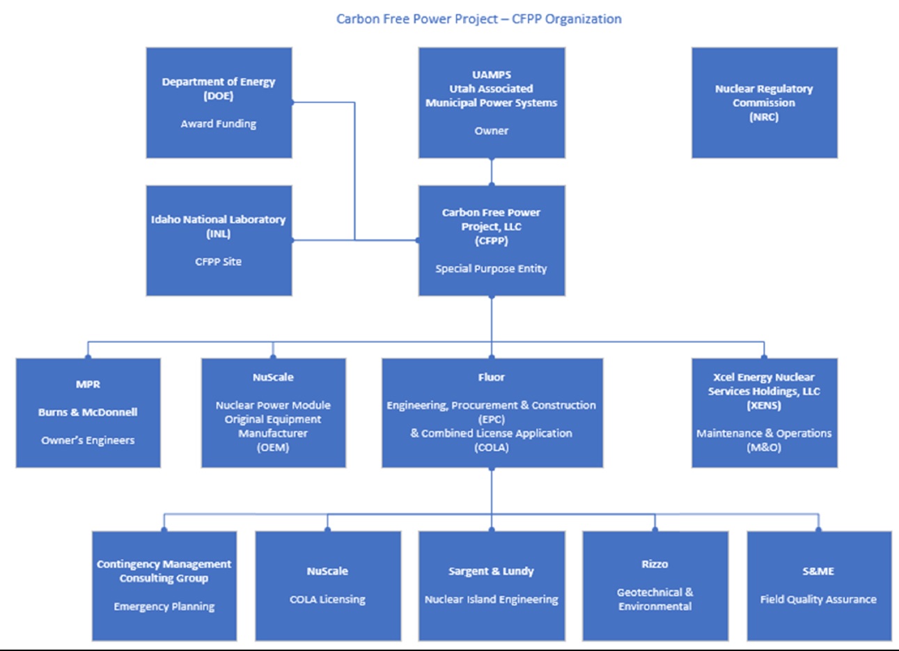 В NRC пройдут слушания в рамках подготовки к лицензированию проекта CFPP AtomInfo.Ru, ОПУБЛИКОВАНО 17.05.2022 Слушания в рамках подготовки к подаче заявки на комбинированную (строительство и эксплуатация) лицензию для станции CFPP пройдут в комиссии по ядерному регулированию (NRC) США 19 мая 2022 года. CFPP (Carbon Free Power Project) - единственный на сегодняшний день проект по строительству АЭС с малыми реакторами компании "NuScale". В качестве заказчика выступает ассоциация UAMPS. CFPP будет состоять из шести модулей, расположенных в едином реакторном здании. Мощность модуля - 77 МВт(э). Подача заявки на лицензию планируется в январе 2024 года. Организационная структура проекта CFPP. ![]() Ключевые слова: Атомнадзор, США, Малая энергетика, NuScale Другие новости: В Обнинске обсудят решения актуальных научно-технических задач в области физики ядерных установок "Нейтроника-2022" пройдёт с 31 мая по 3 июня 2022 года в Обнинске. Пусковой блок "Hongyanhe-6" (Китай) подключён к сети На блоке установлен реактор ACPR-1000. На блоке №3 АЭС "Куданкулам" установлен корпус реактора Монтаж провели методом Open Top. |
