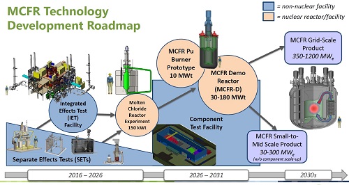 Перспективы Докладчик кратко остановился на перспективах быстрых натриевых реакторов "Natrium". Компания "TerraPower" рассчитывает пустить первый блок с "Natrium" в 2028 году. Далее в 30-ые годы компания намеревается построить серию блоков с "Natrium", название серии - "Commercial Series I". Характерная особенность этого этапа - трёхлетний срок строительства блоков. В 40-ые годы должна появиться серия "Commercial Series II". В ней будут использоваться реакторы гигаваттной мощности (исходный "Natrium" имеет мощность 345 МВт(э), за счёт наличия системы накопления энергии в пиковые периоды блок может выдавать до 500 МВт). Во второй серии блоков с "Natrium" компания "TerraPower" рассчитывает перейти на работу с плутонием в различных режимах. Кроме того, докладчик продемонстрировал слайд, посвящённый планам "TerraPower" по жидкосолевым реакторам - см. ниже. Щёлкните левой клавишей мыши для просмотра ![]() Ключевые слова: Быстрые натриевые реакторы, США, TerraPower, Natrium, Статьи Другие новости: Техснабэкспорт поставит урановую продукцию в Бразилию Первый в истории Росатома долгосрочный контракт с Бразилией на поставку ОУП. Ответ М.В.Захаровой на вопрос о ситуации вокруг Запорожской АЭС Говорить, что стороны близки к согласию, несвоевременно. Фукусима - пьедестал первого блока Состояние пьедестала вызывает опасения по сейсмике. |
