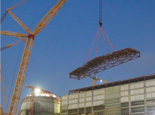 На первом энергоблоке АЭС Аккую завершён монтаж кровли здания турбины Аккую Нуклеар, ОПУБЛИКОВАНО 11.03.2023 В машинном зале блока №1 АЭС "Аккую" завершен монтаж кровли. Весь монтажный процесс занял три месяца, первая ферма была смонтирована 10 декабря 2022 года. ПРОДОЛЖЕНИЕ ПОСЛЕ ФОТО Фото: Аккую Нуклеар ![]() Кровля машинного зала состоит из девяти укрупнённых ферм общей массой 1140 тонн, включая кровельный настил. Укрупнительная сборка ферм массой от 110 до 200 тонн каждая осуществлялась на площадке строительства параллельно на двух стапелях, которые были заранее изготовлены для этой операции. Монтаж проводился тяжёлым гусеничным краном "Liebherr 13000". Перед тем как установить последние фермы конструкции, строители смонтировали несколько элементов тяжеловесного и крупногабаритного оборудования турбоустановки, в том числе деаэратор и бак запаса питательной воды. Следующим этапом работ будет устройство кровельного покрытия. Первый заместитель генерального директора - директор строящейся АЭС "Аккую" Сергей Буцких отметил:
