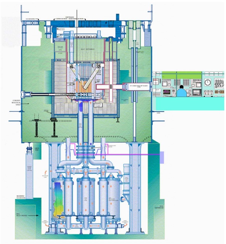 Реактор HIFAR Как уже понятно читателям, HIFAR - тяжеловодный реактор. Тяжёлая вода играет роль теплоносителя и замедлителя. Отражатель составной, тяжёлая вода и графит. Тепловая мощность - 10 МВт(т). Максимальный поток тепловых нейтронов - 1,4×1014 н/(см2с), максимальный поток быстрых нейтронов - 3,5×1013 н/(см2с). Топливо - обогащённый уран. На первых порах, с 1958 по 1961 год обогащение составляло 93%, потом до 1984 года перешли на обогащение 80%, после чего до 2005 года - на обогащение 60%. С 2005 года и до окончательного останова реактор работал на уране с обогащением 19,6%. Размеры реакторного здания таковы: диаметр 21 м, высота 21 м. Размеры активной зоны: диаметр 0,75 м, высота 0,6 м. В проекте предусмотрены три теплообменника, из которых два находятся в работе и третий в резерве. Насосы для перекачки тяжёлой воды имеют производительность 400 кг/с. Стандартная численность персонала HIFAR - 56 человек. Из них 12 инженеров, 24 оператора, 12 техников, шесть человек вспомогательного персонала и два инструктора. Реактор HIFAR. ![]() Изготовление насосов для HIFAR. ![]() Тепловыделяющий элемент HIFAR. ![]() Теплообменник HIFAR. ![]() БЩУ HIFAR. ![]() Эксплуатация реактора После первого выхода на МКУ на реакторе выполнялась программа по освоению мощности с достижением номинала в октябре 1960 года. Не всё получалось так, как хотелось бы. В 1980-ые и в начале 1990-ых годов в среднем за год на реакторе было от 20 до 25 неплановых остановов. Впоследствии ситуация улучшилась - так, за последний год службы реактор останавливали всего три раза. Основное назначение реактора HIFAR - производство нейтронов для облучательных экспериментов. Он также служил центром обучения для инженеров и учёных. В 1960 году на реакторе впервые была наработана партия радиоизотопов. Был наработан натрий-24. Данный изотоп использовался в те времена как индикатор при измерении переноса натрия у беременных женщин к плоду. Реактор HIFAR был официально закрыт 30 января 2007 года. Сейчас аппарат находится на стадии вывода из эксплуатации. Времена изменились, деньги полегчали, и на вывод потребуется намного больше денег, чем на строительство - по некоторым оценкам, более 100 миллионов долларов для вывода до стадии зелёной лужайки. Ключевые слова: История, Исследовательские реакторы, Австралия, Статьи, Владимир Рычин Другие новости: Реактор CARR открыт для зарубежных заказчиков Поступило свыше 40 заявок. Новые атомные ледоколы назовут "Камчатка" и "Сахалин" Закладка "Камчатки" - май 2024 года, "Сахалина" - осень 2025 года. Текст китайской ноты, переданной в секретариат МАГАТЭ. |