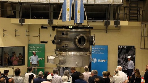 На строящемся исследовательском реакторе RA-10 поднят бак отражателя AtomInfo.Ru, ОПУБЛИКОВАНО 11.03.2024 Бак отражателя был поднят краном для установки в проектное положение на строящемся в Аргентине исследовательском реакторе RA-10, сообщает "World Nuclear News". ПРОДОЛЖЕНИЕ ПОСЛЕ ФОТО Фото: CNEA ![]() Изотовитель бака - компания INVAP. Сроки изготовления - 32 месяца. Бак выполнен из циркониевого сплава и весит 2540 кг. Размеры бака - диаметр 2 м, высота 1,4 м. В качестве отражателя в реакторе RA-10 будет использоваться тяжёлая вода. В баке отражателя предполагается также размещение пучков и иных устройств, необходимых для наработки изотопов. Бак отражателя RA-10. ![]() Ключевые слова: Строительство, Латинская Америка, Аргентина, Исследовательские реакторы Другие новости: МАГАТЭ опубликовало справочник по теплогидравлическим корреляциям для натриевого теплоносителя В документе 286 страниц и 63 иллюстрации. Язык документа - английский. На Запорожской АЭС стартовала ремонтная кампания 2024 года Началась с ремонта первого блока. Во Франции возобновили использование топлива из обогащённого регенерированного урана После 10-летнего перерыва. |