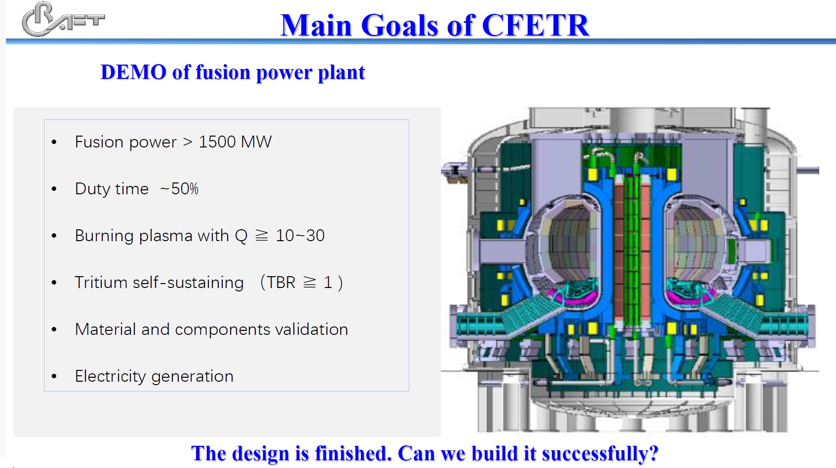 Китай - CRAFT для термояда AtomInfo.Ru, ОПУБЛИКОВАНО 29.10.2025 30-я международная конференция МАГАТЭ по термоядерной энергетике (FEC-2025) прошла в Чэнду (провинция Сычуань, Китай) с 13 по 18 октября 2025 года. В пленарном докладе, представленном китайской стороной, говорилось о создаваемом в Китае центре всеобъемлющих исследований термоядерных технологий CRAFT (Comprehensive Research fAcility for Fusion Technology). В Китае ведётся разработка опытного термоядерного реактора CFETR. Для проекта поставлена цель обеспечить выделяемую в ходе реакции синтеза мощность свыше 1500 МВт(т), получить показатель Q в диапазоне от 10 до 30, а также выйти на самообеспечение по тритию. Предполагается, что CFETR будет производить электроэнергию. Проект CFETR в целом готов, утверждал китайский докладчик. Теперь встаёт следующий вопрос: получится ли его построить? В рамках подготовки к практической реализации проекта CFETR в Китае завершается сооружение исследовательского центра CRAFT. Перед центром поставлены следующие задачи: